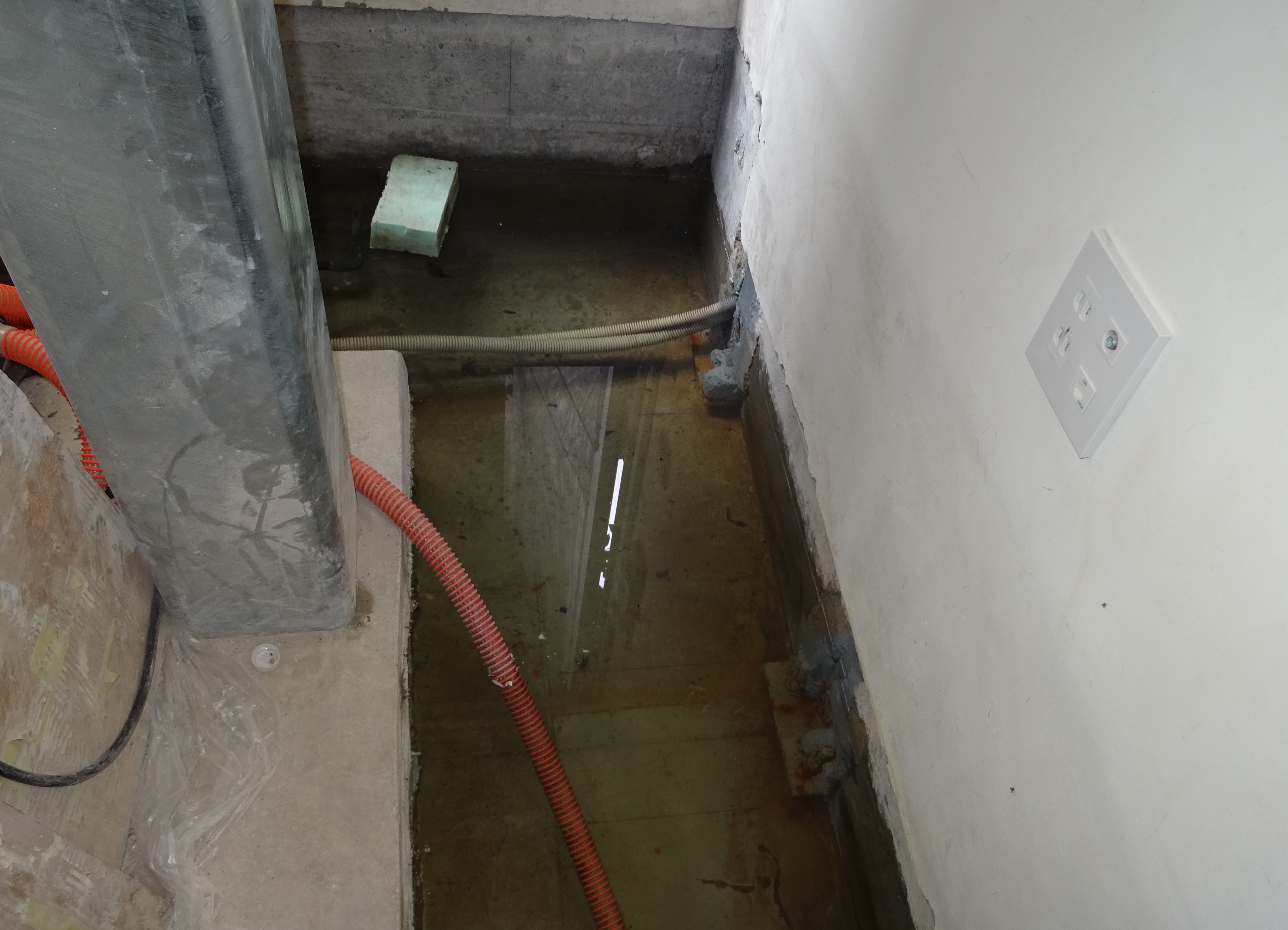 以前、漏水調査に行った時の写真です。床下がプールのようになっていて、水の深さは20cm程ありました。見えないところでこのような状況が起きていると思うと、非常に恐ろしくなります。