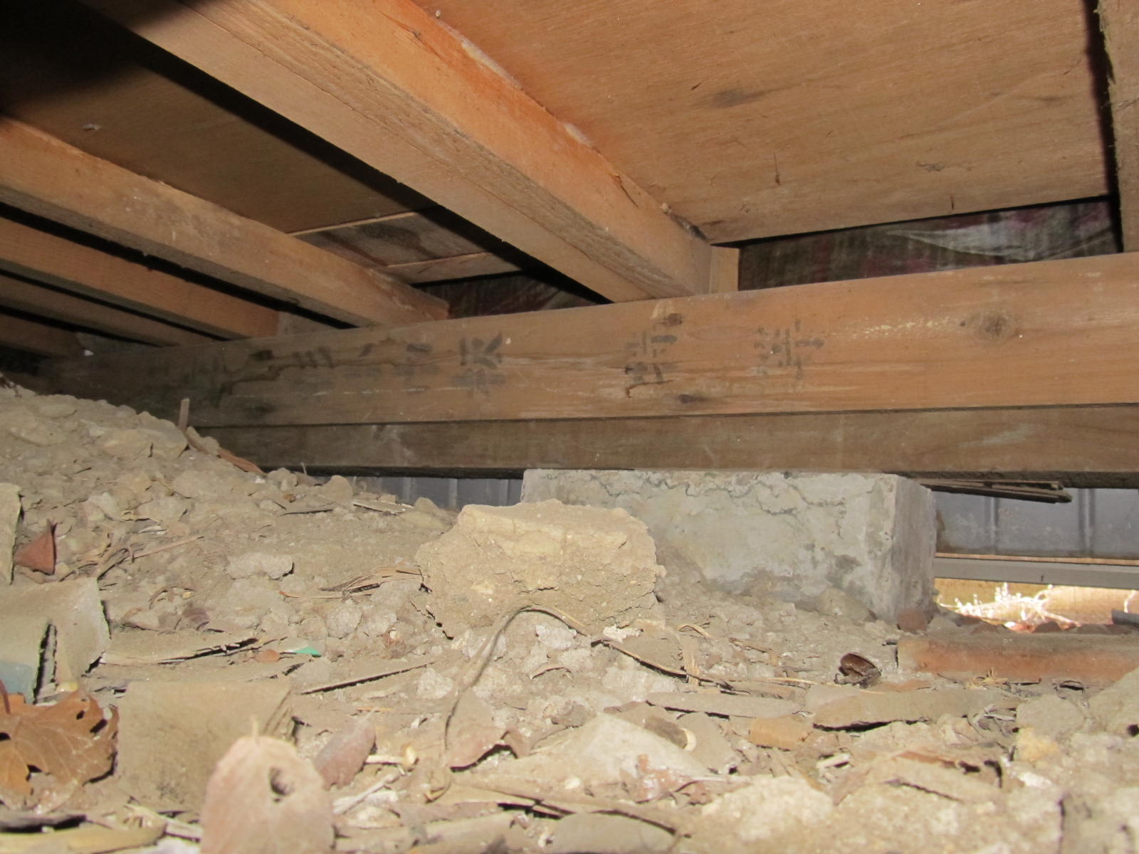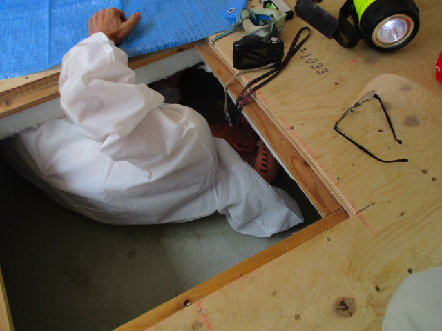点検口から入り込み床下詳細調査を開始